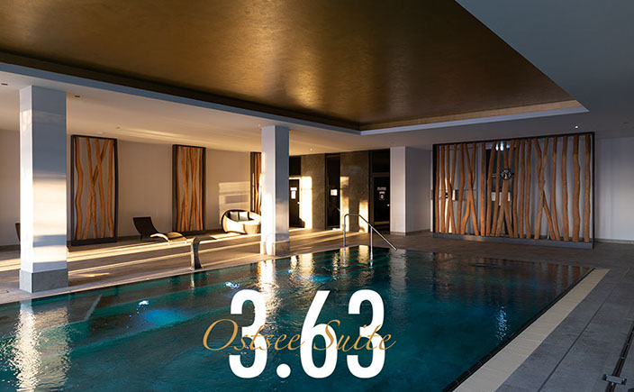 Zusätzlich können Sie im Erdgeschoss den Wellnessbereich mit Schwimmbad inkl. Sauna nutzen. Bitte beachten Sie dazu die aktuellen Hygienemaßnahmen.